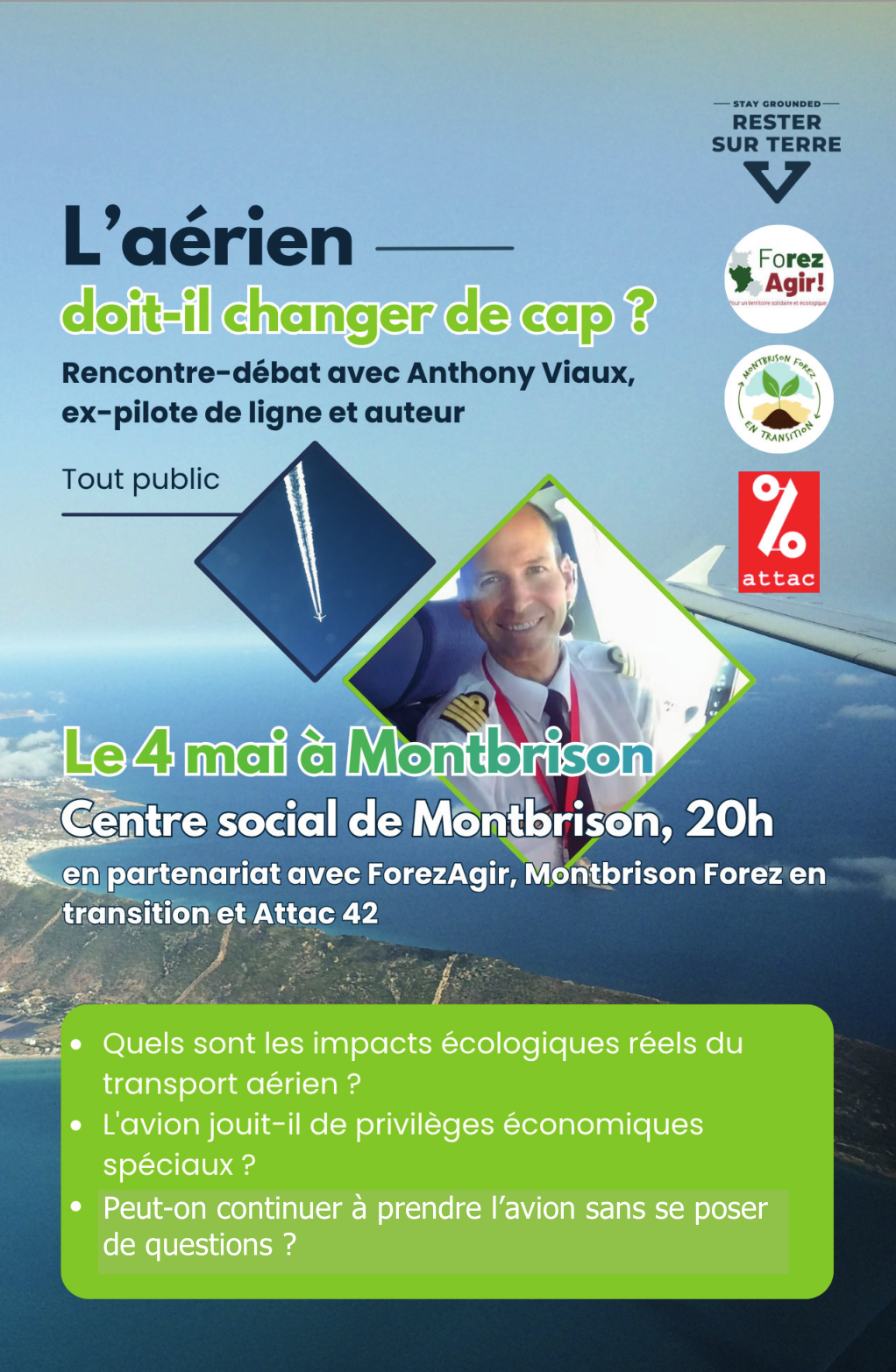 Rencontre-débat avec Anthony Viaux, ex-pilote de ligne chez Air France et auteur du livre “Voyage interrompu - Confidences d’un pilote de ligne éco-anxieux”, nous aide à répondre à cette question en partageant ses connaissances sur le secteur aérien.