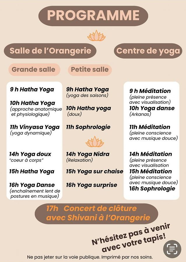 Début 9h, fin 17h concert de clôture Shivani à l'Orangerie