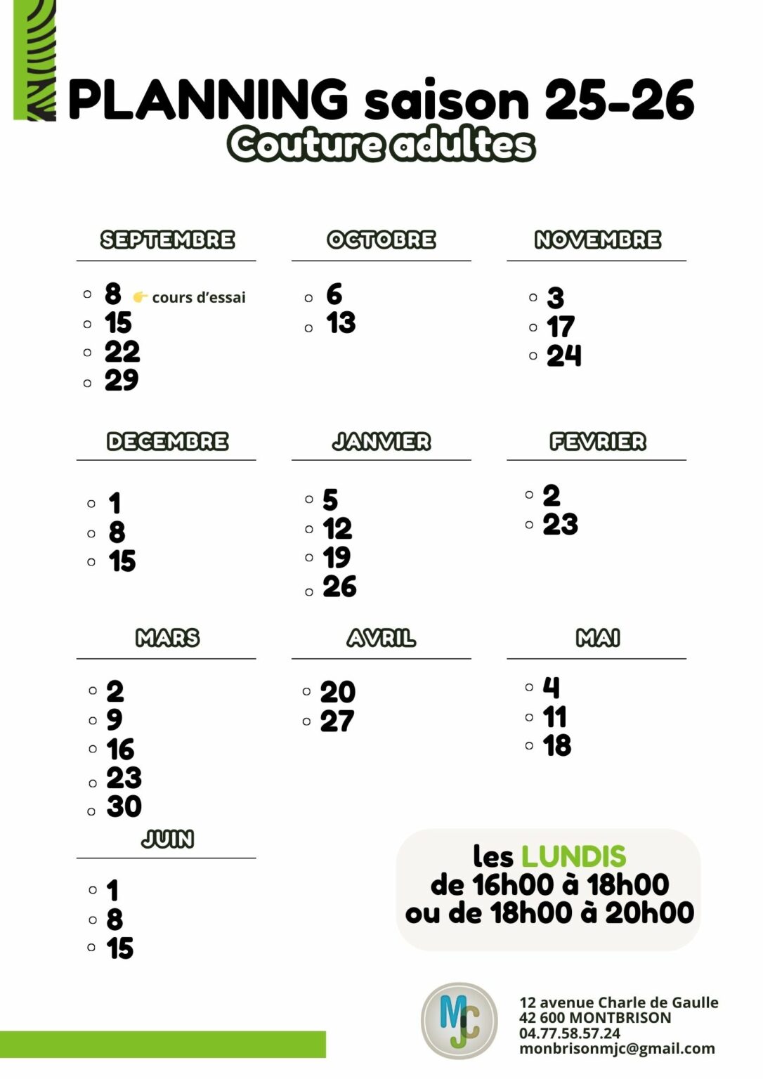 Sous la conduite d’une animatrice passionnée et expérimentée, les participants apprennent à maîtriser différentes techniques de couture, de la retouche aux créations plus élaborées comme des vêtements ou des accessoires. En fonction des envies et des niveaux de chacun, l’atelier propose des projets variés : confection de sacs, vêtements sur-mesure, customisation de pièces existantes ou encore réalisation de petites décorations pour la maison. L’accent est mis sur l’accompagnement personnalisé, permettant à chaque participant de se perfectionner, d’exprimer sa créativité et de repartir avec ses propres réalisations à la fin de chaque séance.