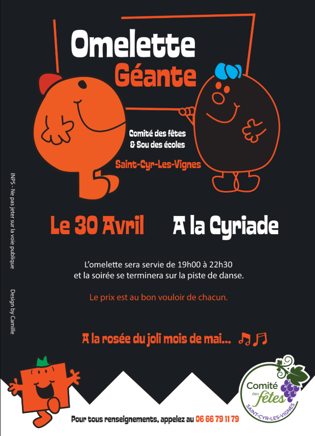 Le Comité des Fêtes vous invite à une soirée conviviale et festive avec omelette géante et soirée dansante pour prolonger la fête. Venez nombreux pour partager un moment chaleureux en famille ou entre amis