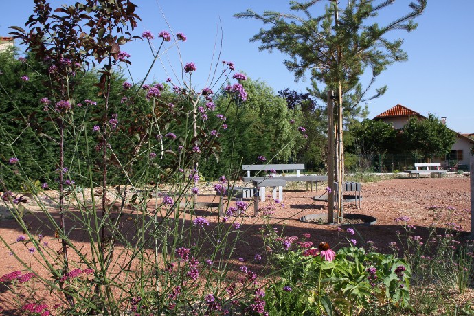 Le parcours dédié à la thématique des senteurs est complété par des zones gazonnées accessibles, le tout entretenu sans pesticides.