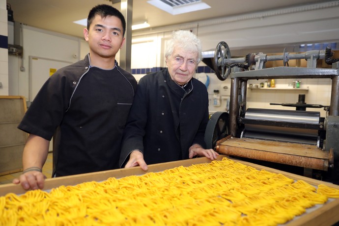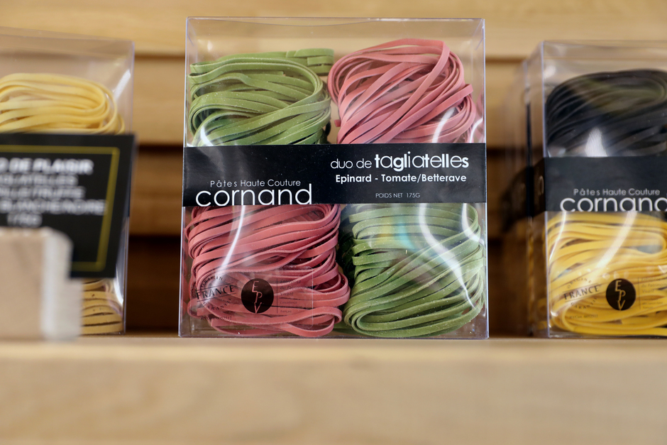 Dans la famille Cornand, je voudrais le grand-père, Étienne, 84 ans, la mère, Luce, 53 ans, et le fils, Hugo, 25 ans... Chez les Cornand, on aime les pâtes à tout âge, et pas seulement à l'heure du repas. Cette épicerie fine, devenue une institution à Saint-Étienne, a transformé ce produit de consommation courante en mets raffiné. « Nous produisons 45 tonnes de pâtes fraîches et sèches par an, à l'ancienne, dans notre atelier stéphanois. Elles sont fabriquées à la main et avec des laminoirs, à partir de produits pour la plupart locaux. » Un savoir-faire devenu rare. « Il devait y avoir 3 000 fabricants en France au début du siècle. Nous ne sommes plus qu'une dizaine. » La gamme comprend 35 déclinaisons, des plus classiques – aux oeufs, cèpes, etc. – aux plus inattendues : vanille, pain d'épices ou curaçao. Une expertise et des saveurs qui ont fait sa réputation bien au-delà de l'Hexagone, puisque les pâtes Cornand s'exportent au Canada, en Belgique, en Suisse et même en Italie ! Pour célébrer son centenaire, la maison propose une nouvelle recette de tagliatelles à base de semoule de blé et d'épeautre. À consommer « le plus naturellement possible, avec de l'huile d'olive ou du beurre ».