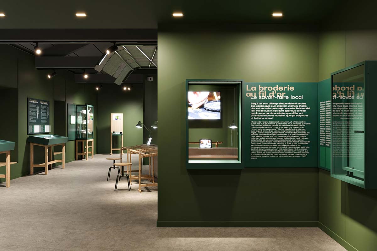Le nouveau musée de la broderie or, aménagé au deuxième étage de L’Orée. Quatre métiers occupent le volume central de l'ancienne colonie de vacances. Plusieurs espaces sont dédiés à la création contemporaine, dont une exposition temporaire. La scénographie est signée Guliver Design (agence stéphanoise).